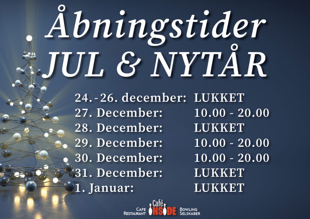 Julen er ganske særlig hos os i Café Inside. Vi har et væld af julefrokoster i både Café, Glassal og i vore mange lokaler – både store og små. Vi har en daglig julebuffet, vi holder hele 3 Julefester – så er man til dansk og livemusik eller til hyggelig Bingo-bowling…så har vi noget for alle.